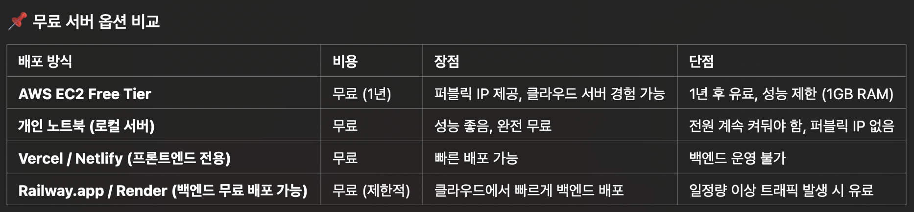 다음 글에서는 **“AWS Free Tier vs. 개인 서버, 어디서 배포하는 게 좋을까?”**를 주제로 다룰 예정이다.