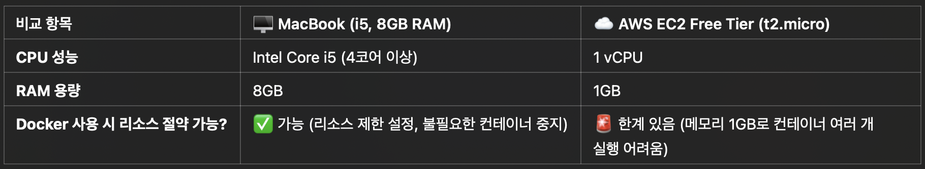 3️⃣ EC2 Free Tier vs. MacBook, Docker로 리소스 절약이 가능할까?